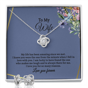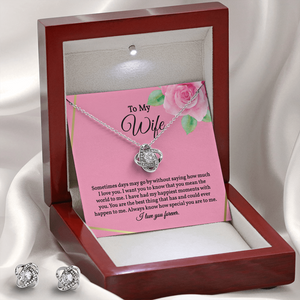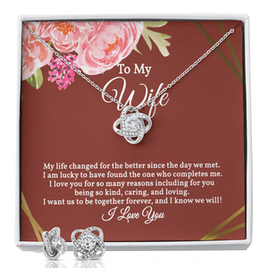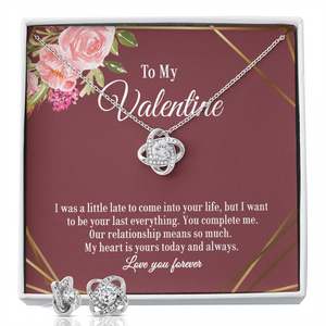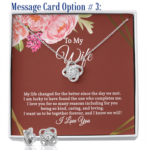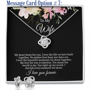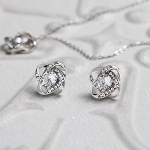 Surprise her with this elegant Love Knot Earring & Necklace Set and a heartfelt message! Select a message from our standard options OR enter your own personalized message and we will customize the card for you. This product ships from the USA!