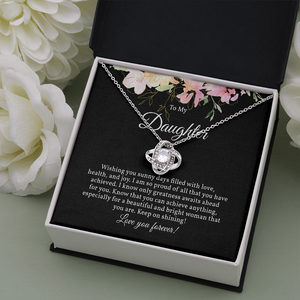 Give your daughter a thoughtful message and a beautiful Love Knot pendant with necklace!