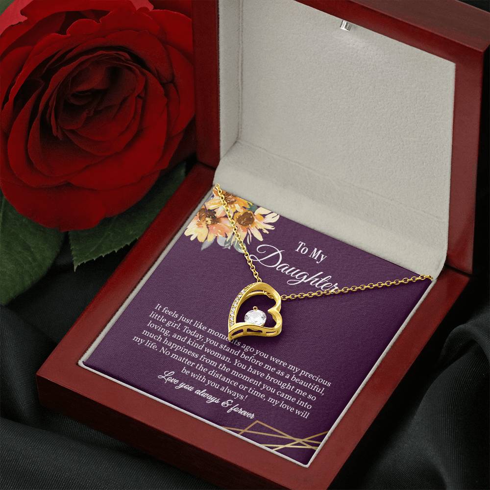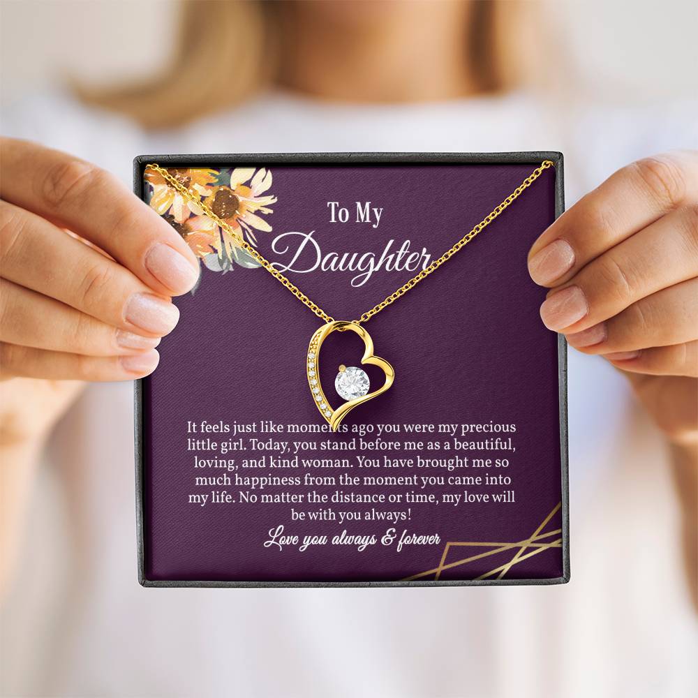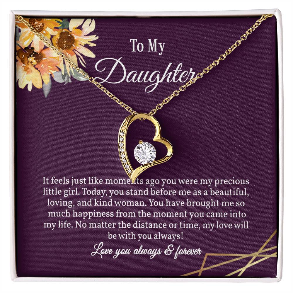 It feels just like moments ago you were my precious little girl. Today, you stand before me as a beautiful,loving,and kind woman.You have brought me so much happiness from the moment you came into my life. No matter the distance or time, my love willbe with you always!