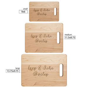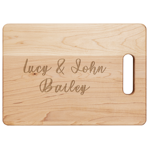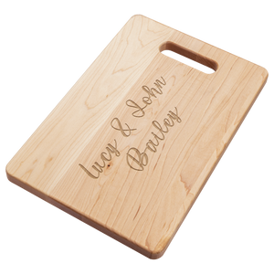 Our personalized maple cutting boards are absolutely stunning! Have custom name(s) or your favorite personalized text engraved on a quality maple cutting board. Available in three sizes. These beautiful cutting boards proudly made in the USA!
